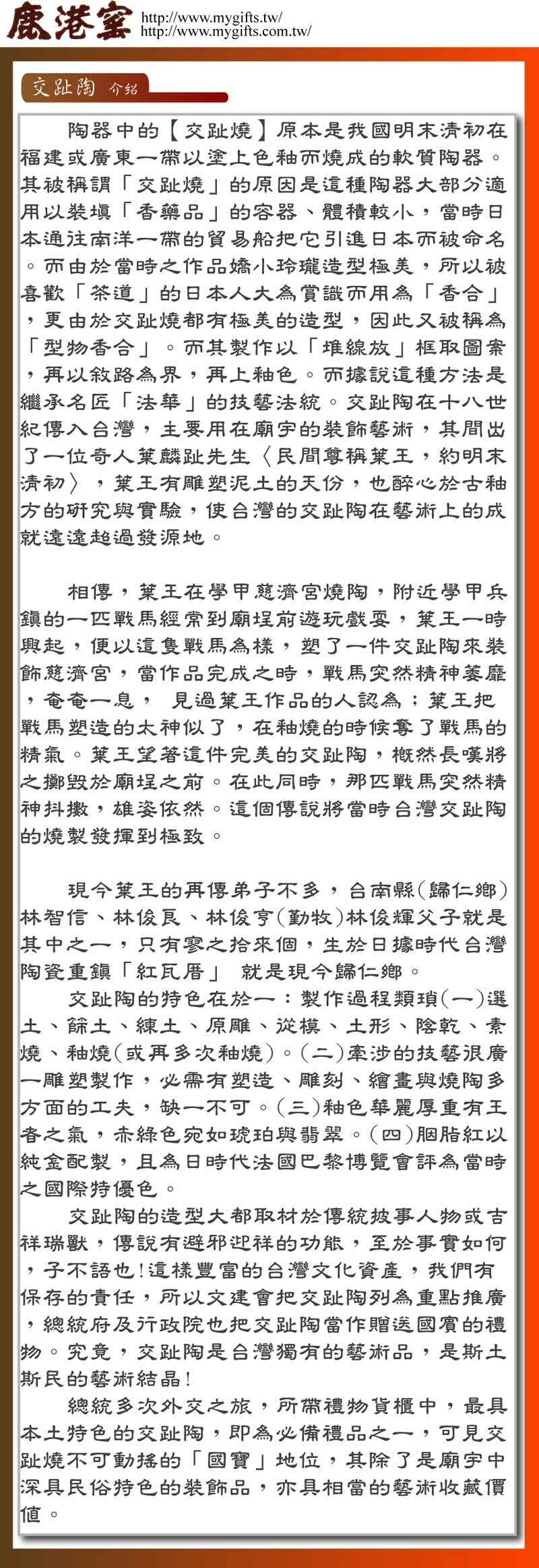 鹿港窯品牌故事來自於臺灣彰化縣鹿港小鎮的高品桐,為陶藝師兼創業家,四十多年來的創作歷程,年輕時在學校學習陶瓷,踏入社會後開始以陶藝為生,從創作、創業到創新。 1992年抱持著飲水思源不忘本的中心思想,以品牌『鹿港窯』積極行銷推廣陶瓷工藝。
