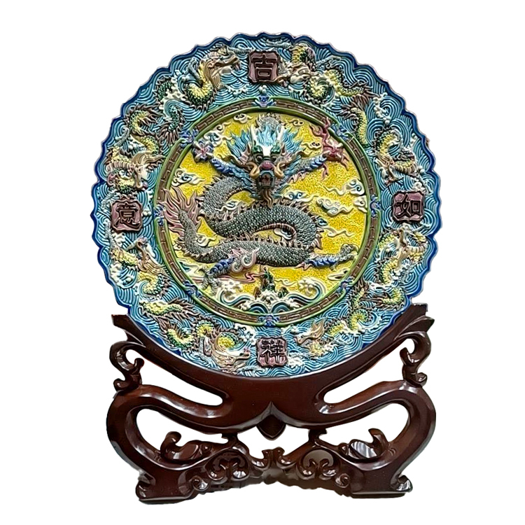 九龍盤擺飾,以手工交趾陶展現祥龍吐珠、八龍盤繞的吉祥意象,象徵登峰造極、萬事昇平,開運首選。