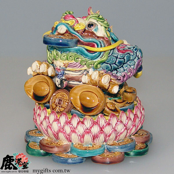 台灣交趾陶三腳金蟾蜍,象徵招財闢邪,傳說助劉海濟世助人,是開運求財不可或缺的風水寶物。