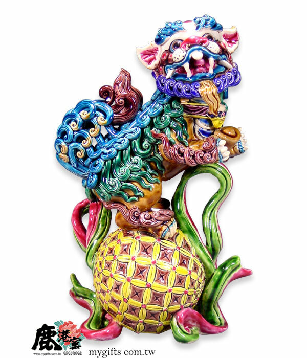 台灣國寶交趾陶中戲獅,林智信手工捏製彩繪,寓意驅邪納福、招財進寶,適合收藏自用、感謝同仁、獎勵部屬、升遷榮調與高階商務禮品。