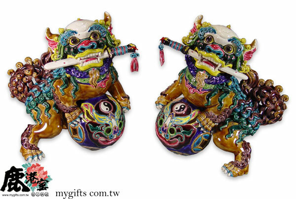 台灣國寶交趾陶|鎮宅獅對 踏球L