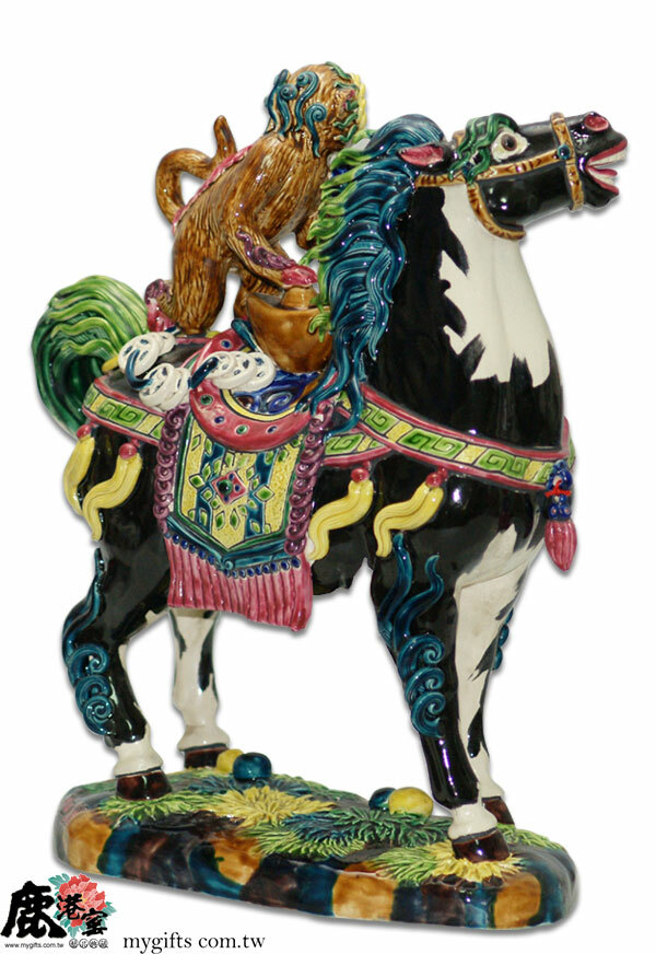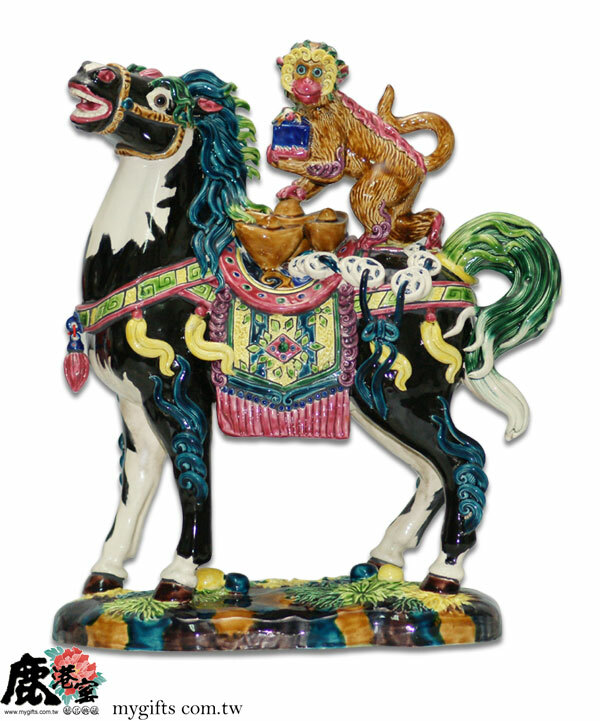 交趾陶《馬上封侯》運用諧音吉象,猴騎馬象徵加官晉爵,手工打造,寓意事業飛黃騰達、金榜題名、財運亨通。