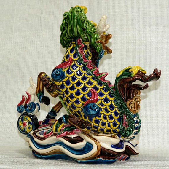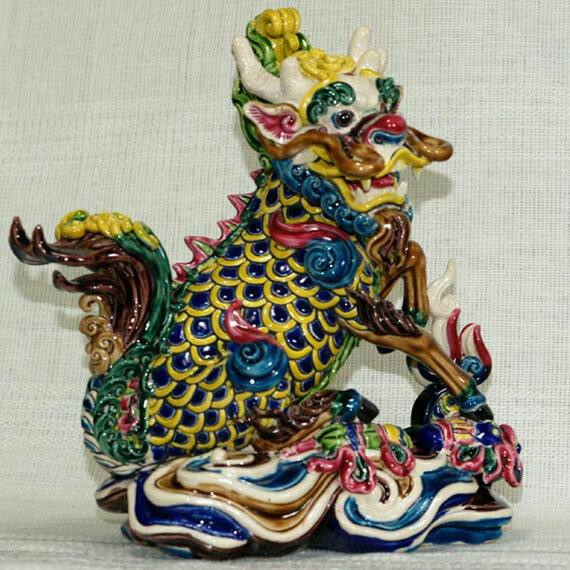 交趾陶坐麒麟,象徵平步青雲、麒麟送子,寓意吉祥如意。手工捏製彩繪,展現台灣工藝之美,收藏贈禮兩相宜。