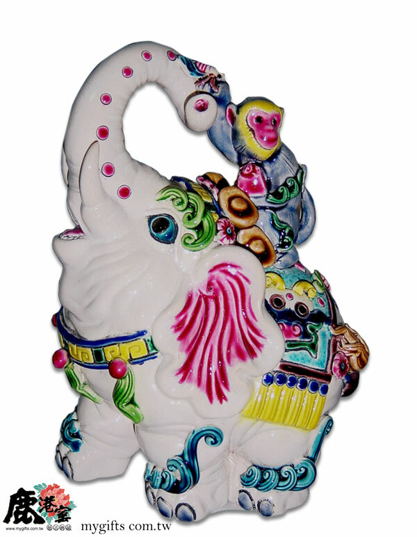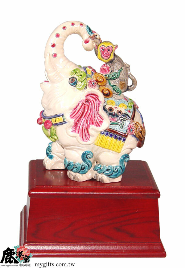 猴子騎象,鼻端有蜂,象徵「向上封侯」。寓意仕途飛黃騰達、事業興旺,是送禮與收藏的吉祥首選。