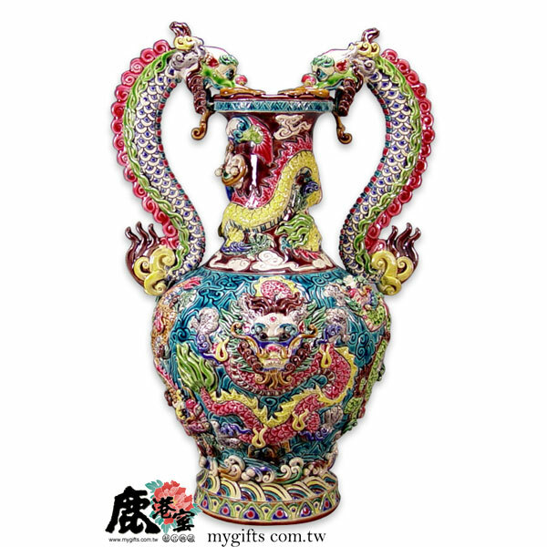 交趾陶九龍瓶,九龍蟠繞象徵登峰造極、招福開運,寓意繁榮吉祥、家庭平安。適合收藏自用、感謝同仁、獎勵部屬、升遷榮調及高端商務贈禮。