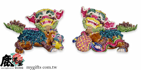 祥瑞獅對象徵驅邪納福、財運亨通,手工彩繪精緻細膩,收藏贈禮皆宜,展現台灣交趾陶工藝之美。
