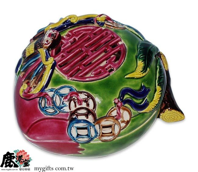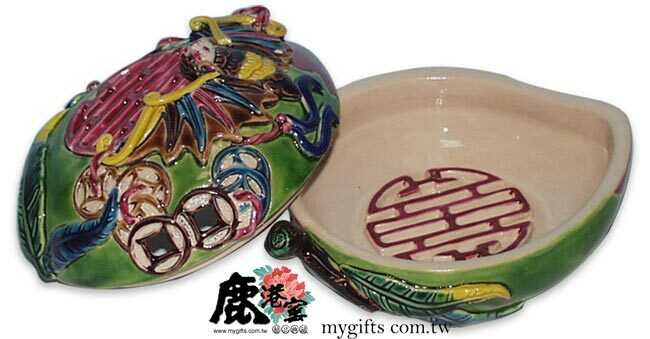 福壽雙全香爐結合桃與蝙蝠吉祥圖騰,象徵長壽與福氣,由林智信老師手工打造,收藏送禮兩相宜。