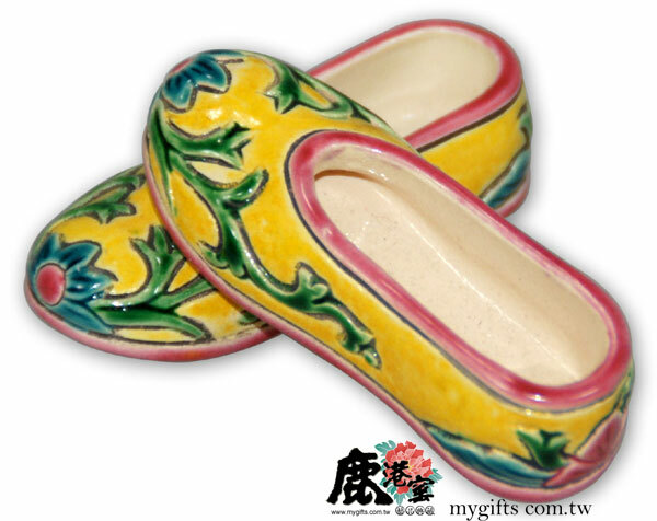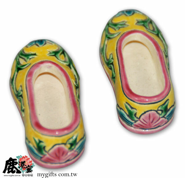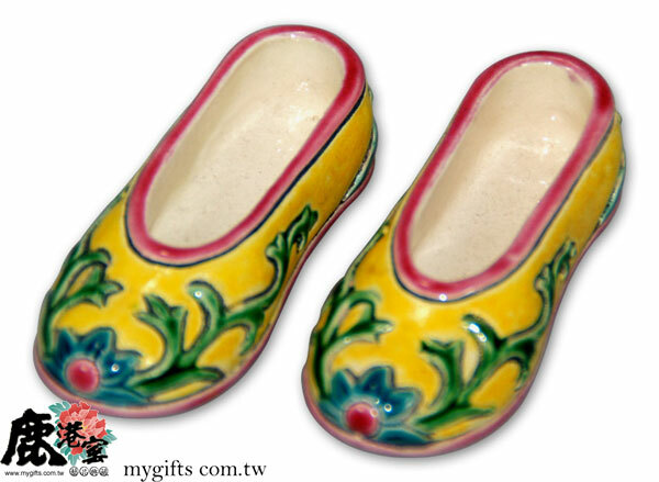 交趾陶SS繡花鞋,融合傳統繡藝與陶塑工法,圖騰寓意吉祥圓滿,是具文化底蘊的開運擺飾與收藏佳作。