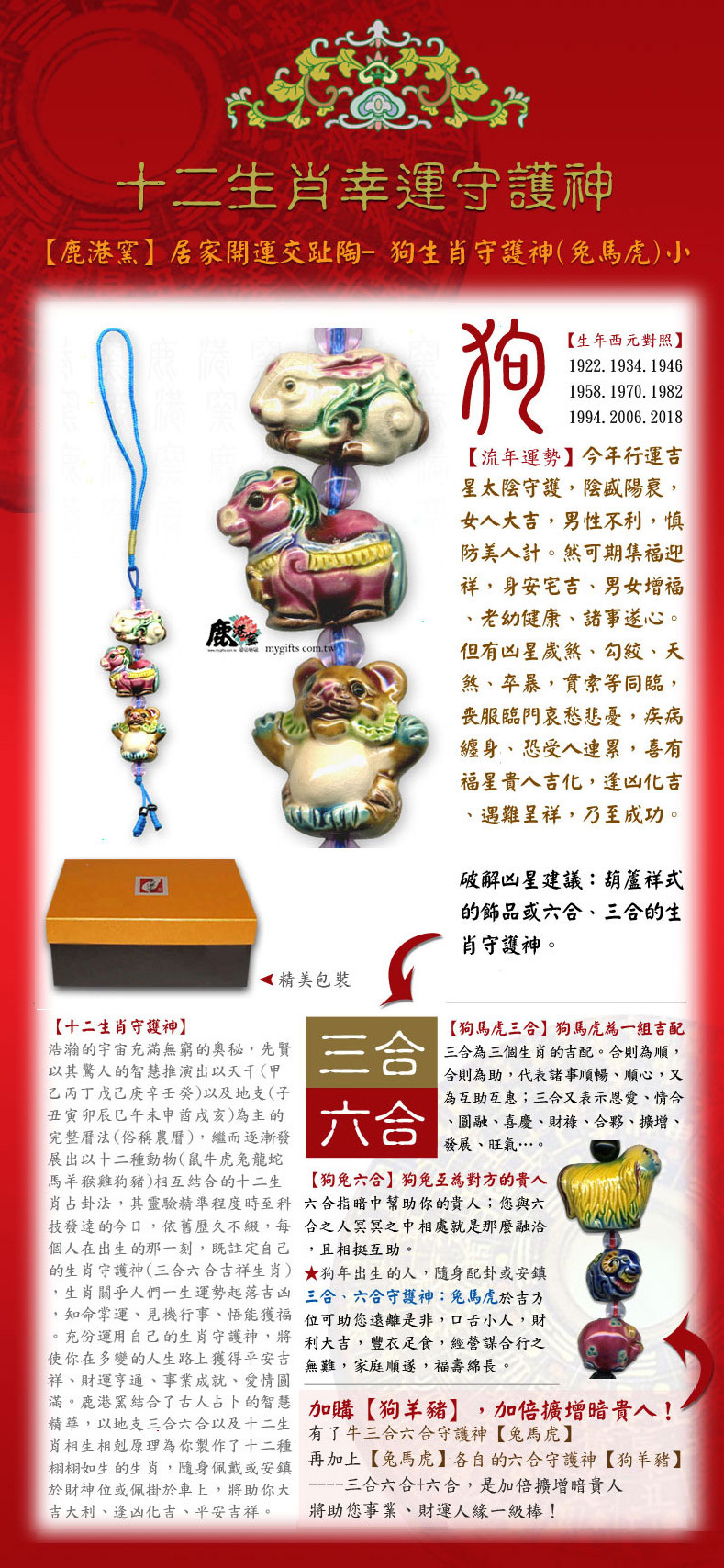 生肖虎專屬三合六合守護神豬馬狗,精緻交趾陶吊飾,小巧實用,助您逢兇化吉、平安順遂,是隨身開運首選。