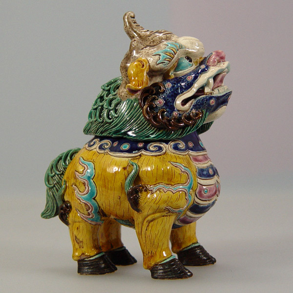小甪端香爐為交趾陶手工藝品,象徵闢邪除災、祥瑞守護,適合作為居家擺飾與風水吉祥物。
