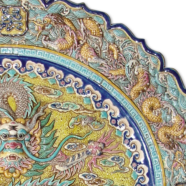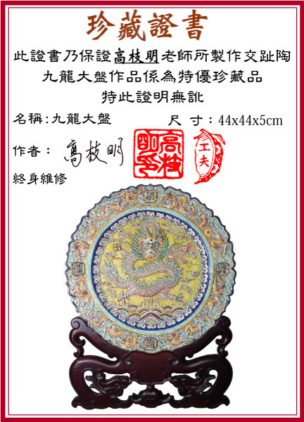手工交趾陶九龍大盤,象徵祥瑞與昇平,九龍獻瑞寓意尊貴吉祥,是贈送外賓或收藏首選的台灣文化藝術珍品。