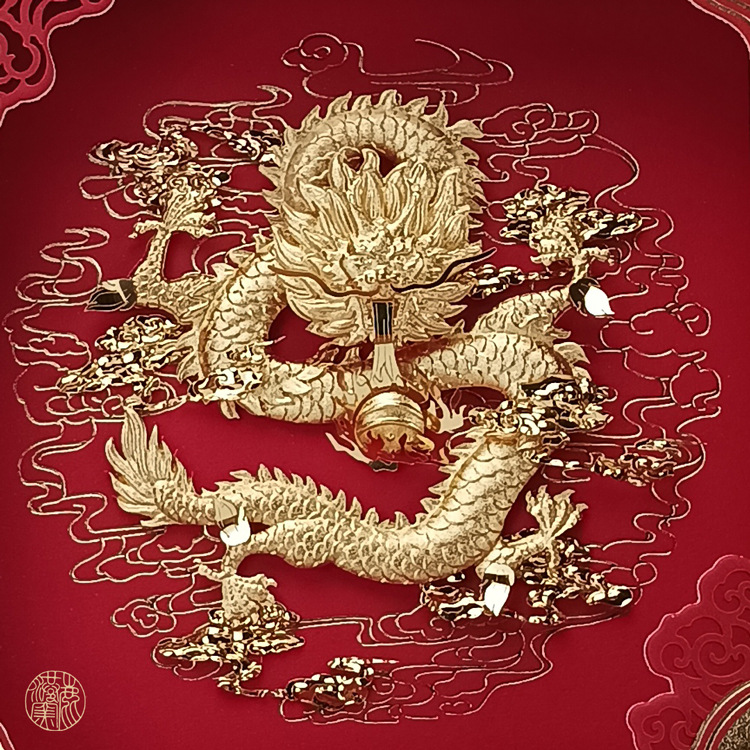 品名:【鹿港窯】立體金箔-金箔畫-祥雲雕花系列【祥龍獻瑞】