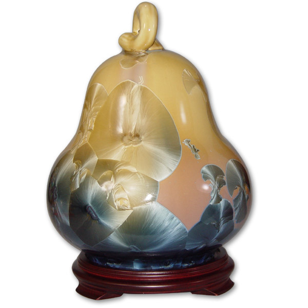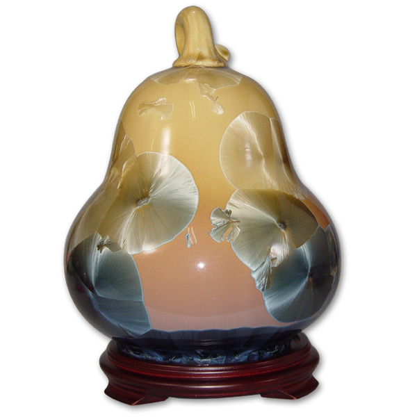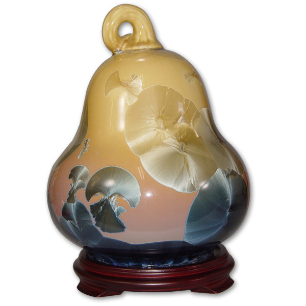 結晶釉是屬於:流動性自然開花的的特殊釉彩!施釉技巧、色澤調配、火侯控制都非常重要 。以1300度高溫循環四十幾個小時,結晶釉是千變萬化,綻放的美麗花朵皆不相同!仙女散花 、 碧海珊瑚、 花團錦蔟 山川流水-------件件作品 , 光鮮亮麗!歷經數千窯也無相同,全都是獨一無二!