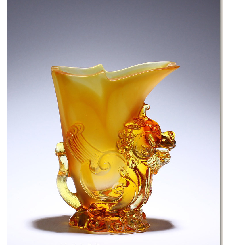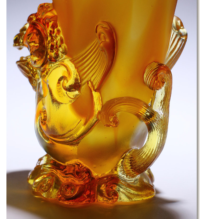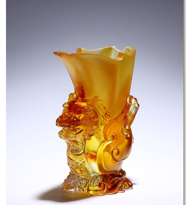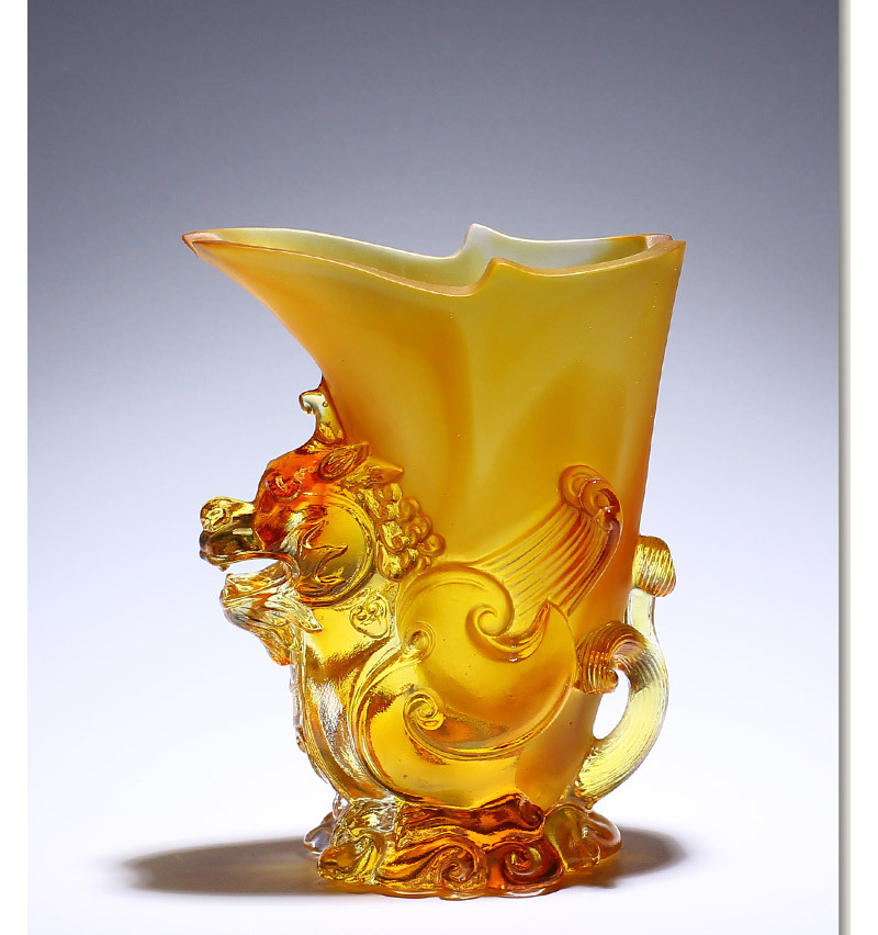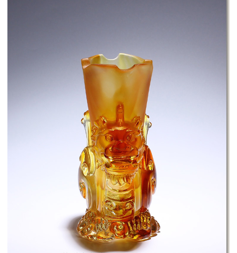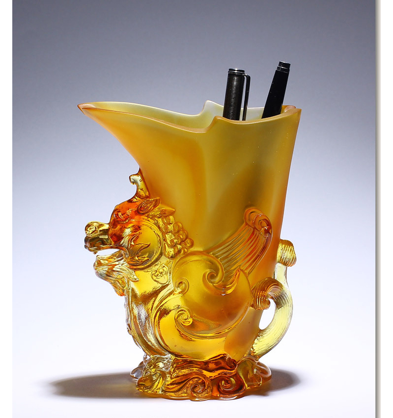 經典琉璃貔貅筆筒,運用脫蠟工藝手作打造,造型莊重大氣,寓意招財納福,是開業開市、致謝送禮的絕佳選擇。