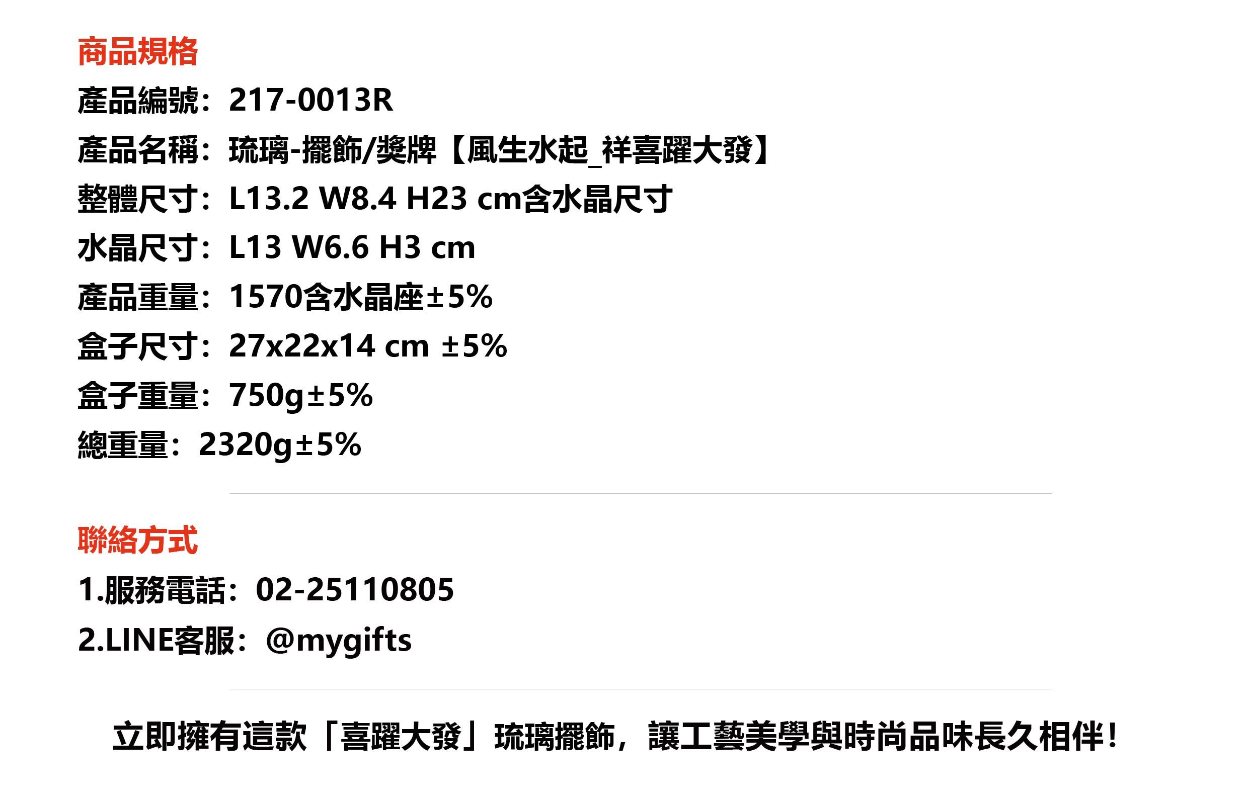 整體尺寸:L13.2 W8.4 H23 cm含水晶尺寸