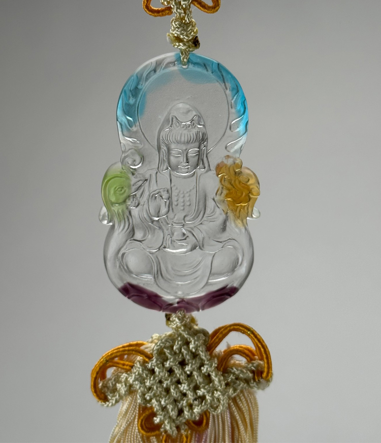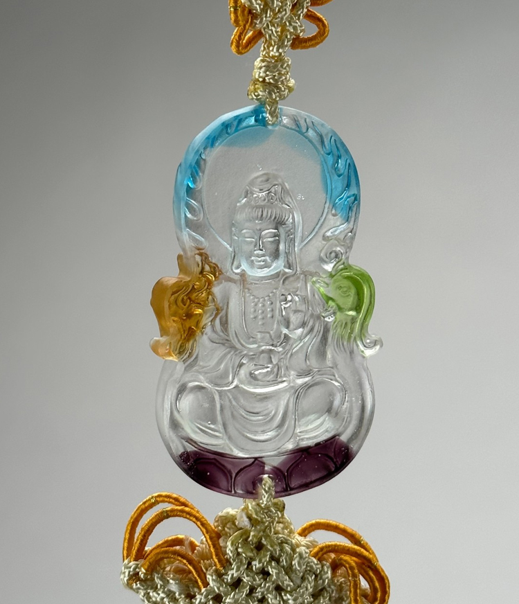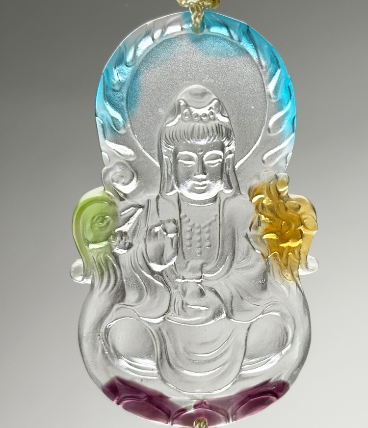 琉璃龍鳳觀音吊飾,結合祥瑞龍鳳與觀音菩薩意象,寓意吉祥平安,藝術收藏首選。
