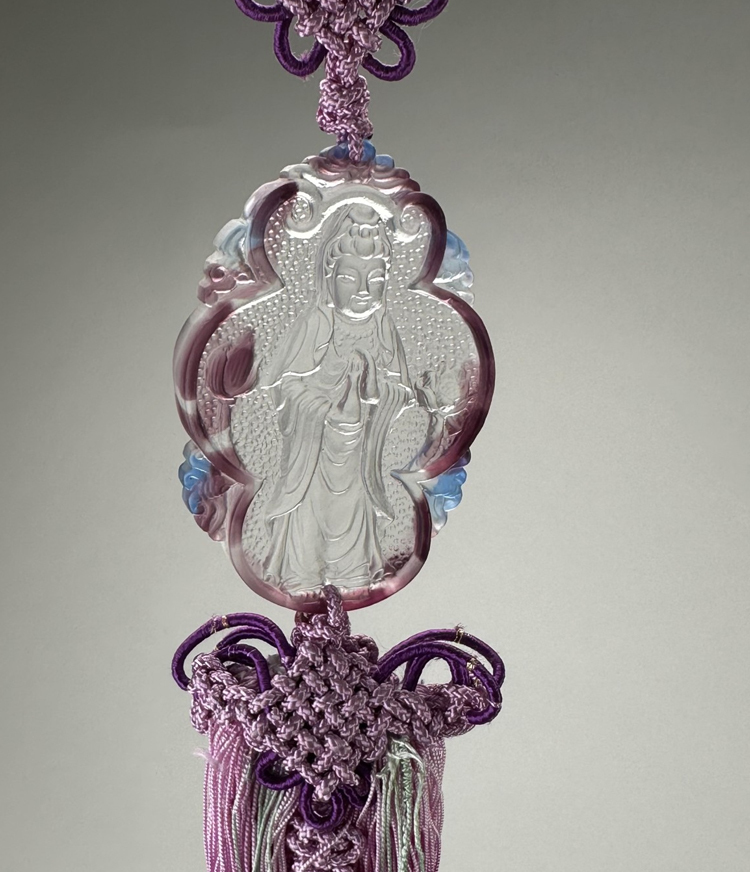 琉璃吊飾寶瓶觀音,手持寶瓶象徵清淨甘露,招福平安,守護隨身佛像,開運首選。