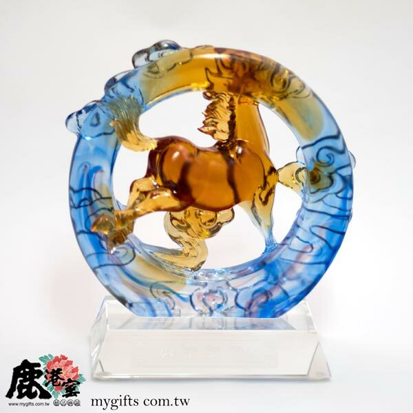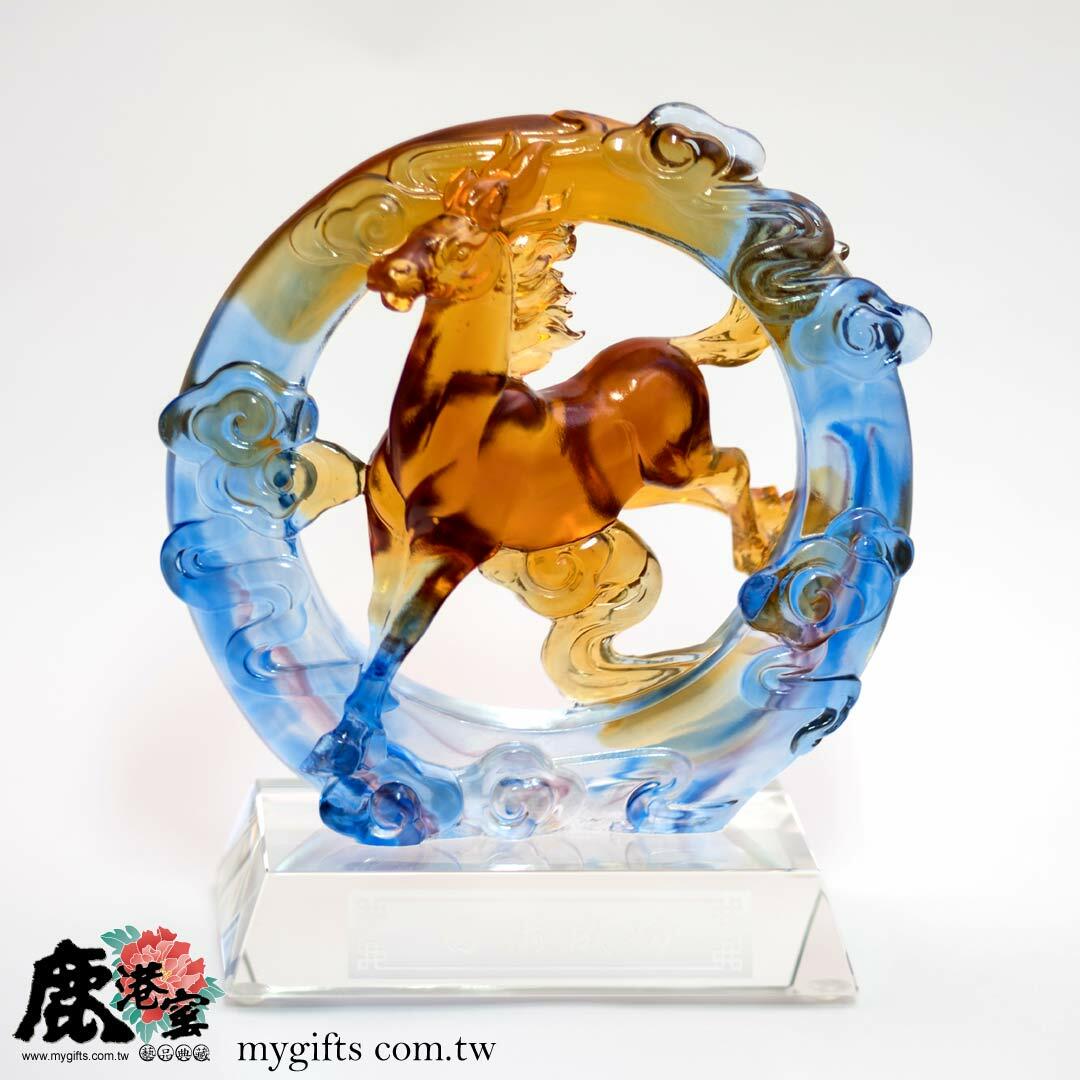 駿馬身姿矯健,腳踏祥雲,象徵事業、功名、學業、財運飛黃騰達,琉璃藝術品珍藏送禮首選。