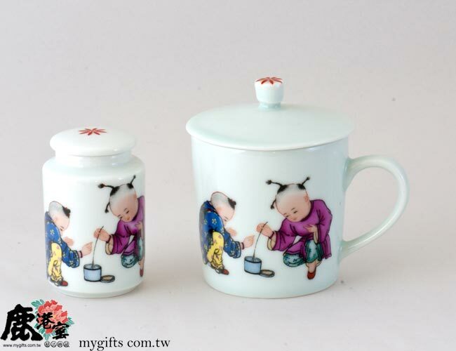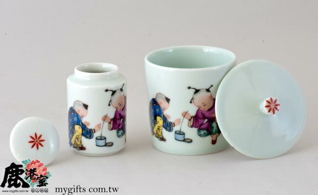 粉彩玩童陶瓷旅行茶具組,高嶺土薄胎製作,細緻美白,童趣圖案,輕巧便攜,個人品茗首選。