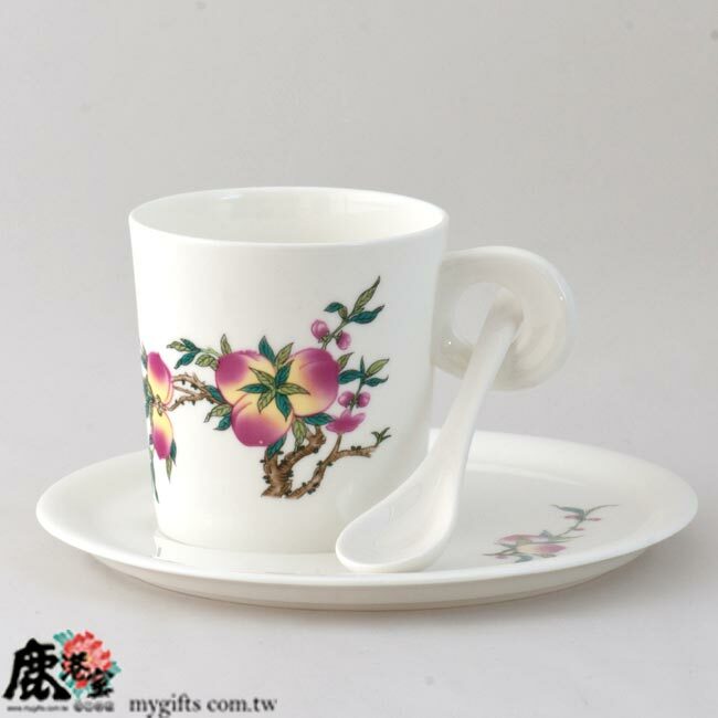 陶瓷 咖啡杯組 (馬克杯組)粉彩壽桃