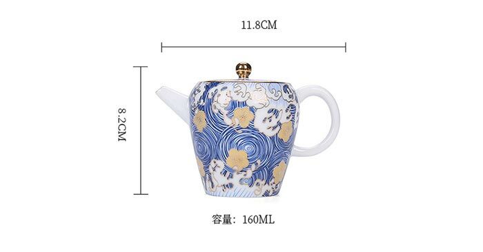 星月浪花描金茶具組,梵谷星夜靈感,結合浪花與梅花描金,1壺6杯禮盒高雅送禮首選。