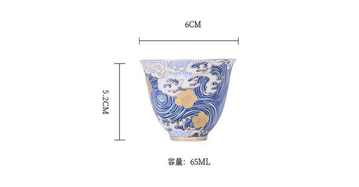 茶具以素白瓷為底,宛如夜空般靜謐。星月點綴其中,流動的浪花彷彿梵谷筆下星夜湍流,帶來自然律動的美感。五瓣梅花以描金工藝細緻點綴,將星夜的憂愁轉化為歡樂,讓每一次品茗都如同在藝術的流光中沉醉。無論獨飲或與摯友共賞,皆能感受茶香與畫意交融的詩意生活。