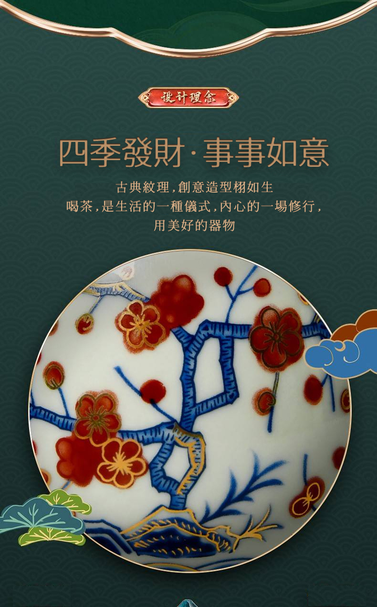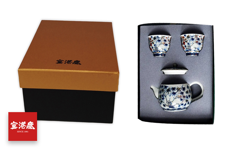 產品名稱:手繪描金四季發財茶具組3入禮盒套裝(1壺2杯)