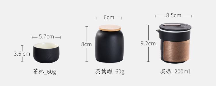 尺寸:茶壺:200ml、8.5X9.2cm/茶葉罐:60g、6X8cm/茶杯:60g、5.7X3.6cm