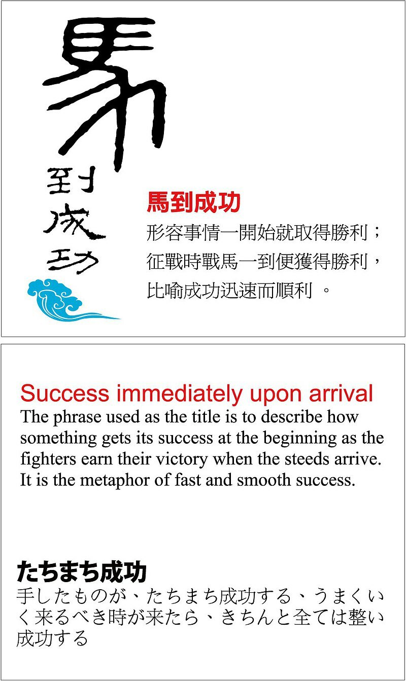 馬到成功形容事情一開始就取得勝利;征戰時戰馬一到便獲得勝利,比喻成功迅速而順利 。