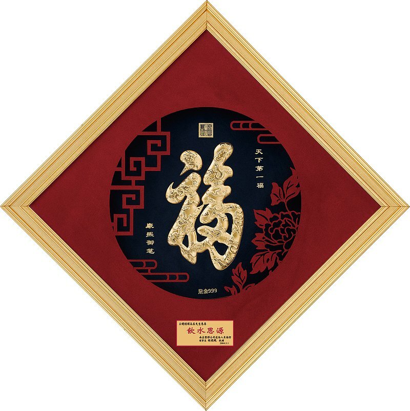 鼎鼎大名的『天下第一福』 是康熙皇帝為孝莊皇太后祝壽所寫的墨寶 含『子、田、才、壽、福』五種字形 寓意『多子、多田、多才、多壽、多福』 福字金箔上有精雕九龍圖,成九龍獻瑞之意。而九為陽數最高,隱有登峰造極,至尊之位。