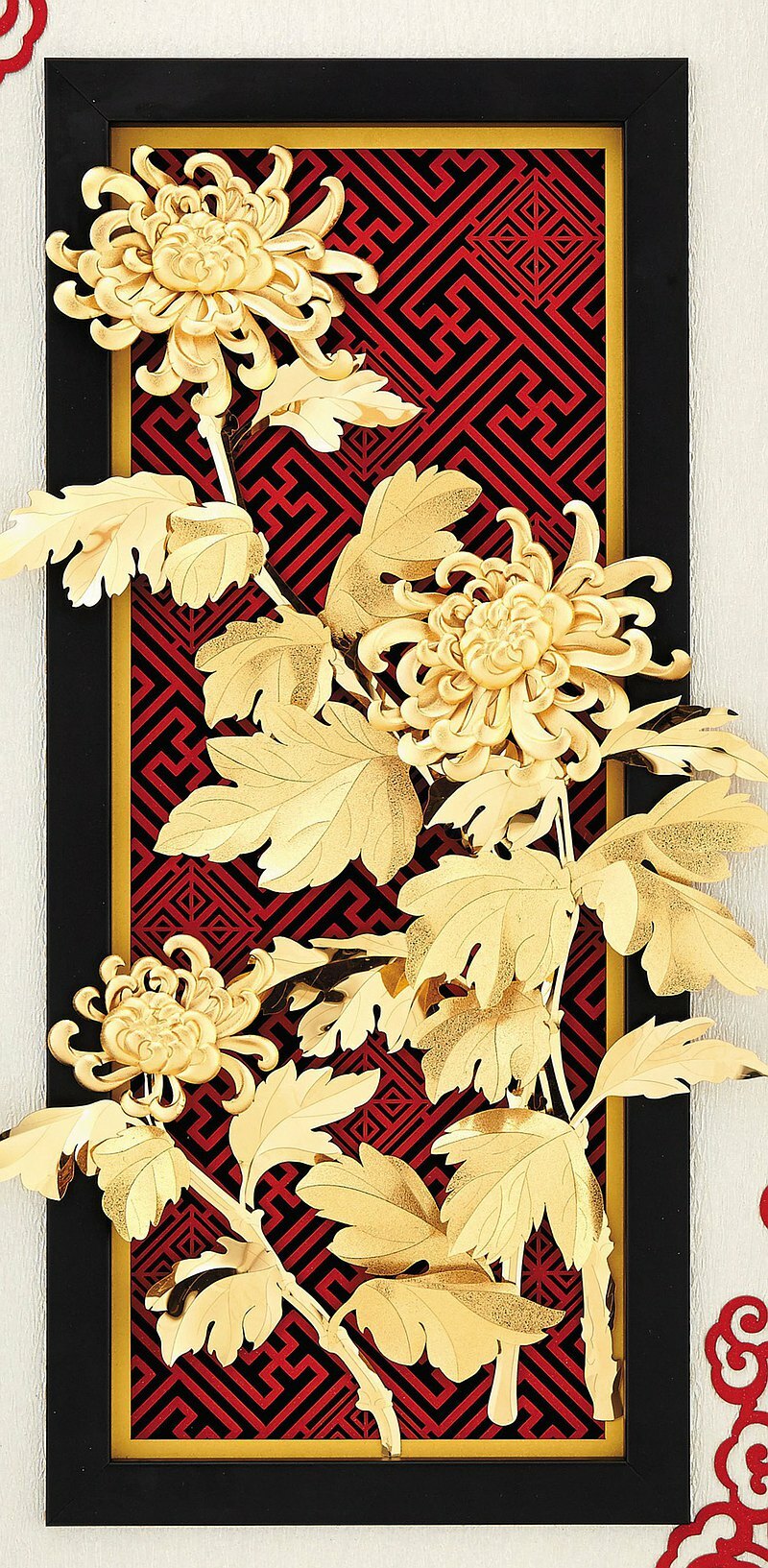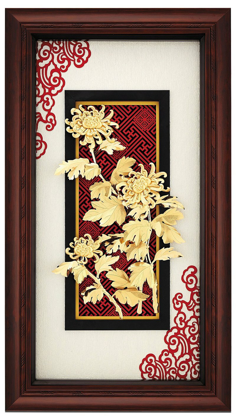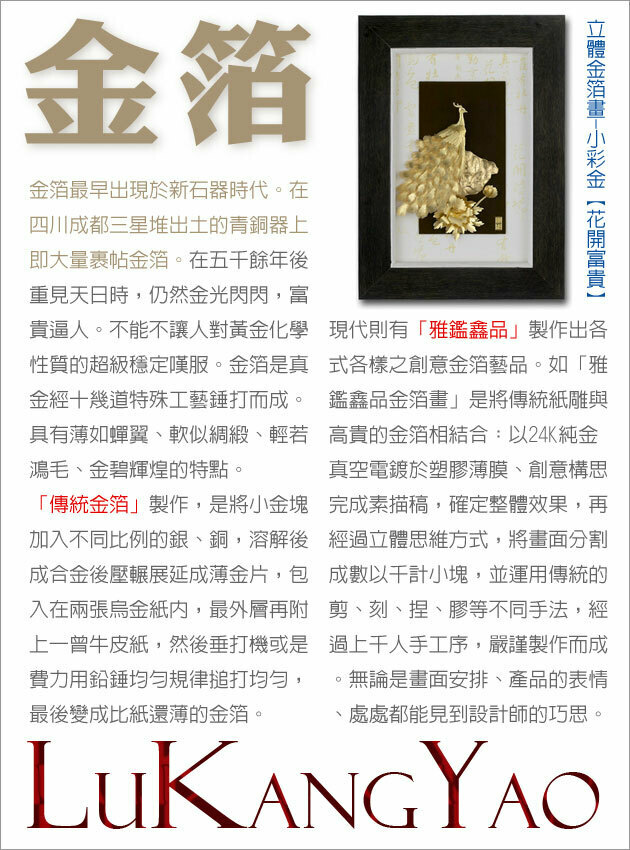 ▲特色:999高純度金箔+科技雷射雕刻樟木窗花+藝術裱褙,高尚雅緻。