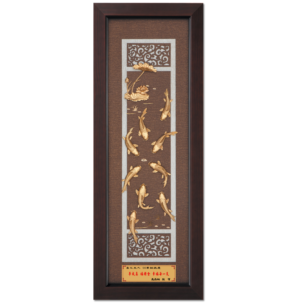 九為陽數最高,隱有登峰造極 至尊之位。鯉魚諧音為“利” 有大開財源、大發利市之意。