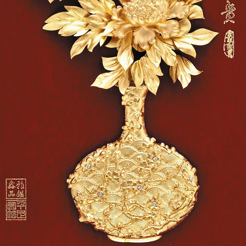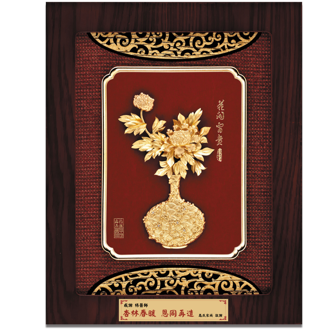 ▲紙雕藝術~立體金箔畫 花開富貴:祝福人們永遠富貴、吉祥、繁榮昌盛、幸福和平。