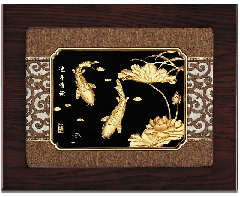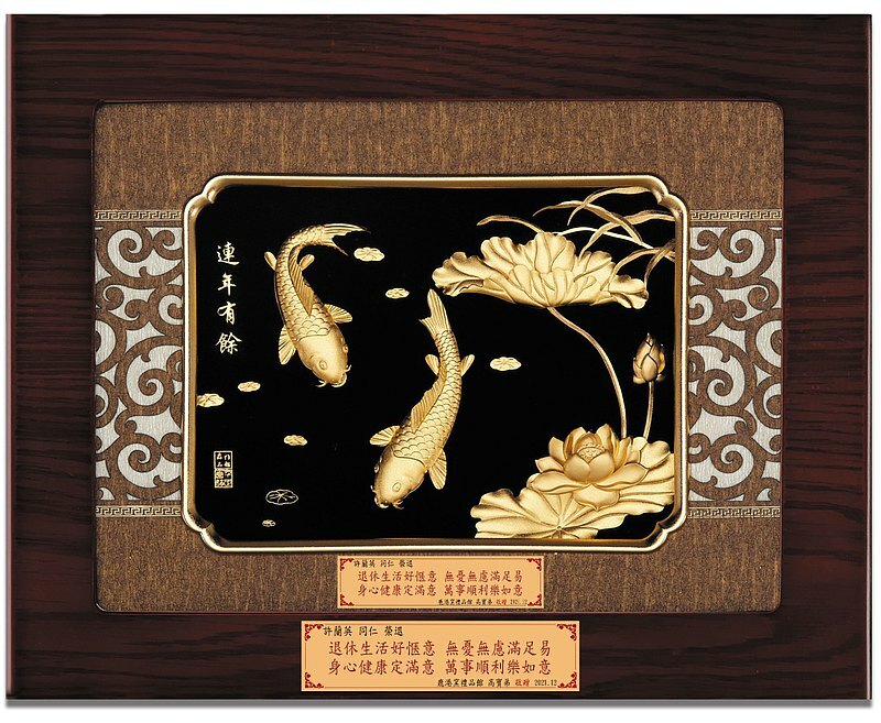 連年有餘是由蓮花和鯉魚組成的傳統的吉祥圖案,用以稱頌富裕祝賀之意。蓮是連的諧音,年是鯰的諧音,魚是餘的諧音,也稱年年有魚。