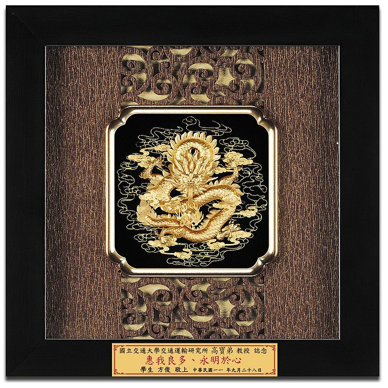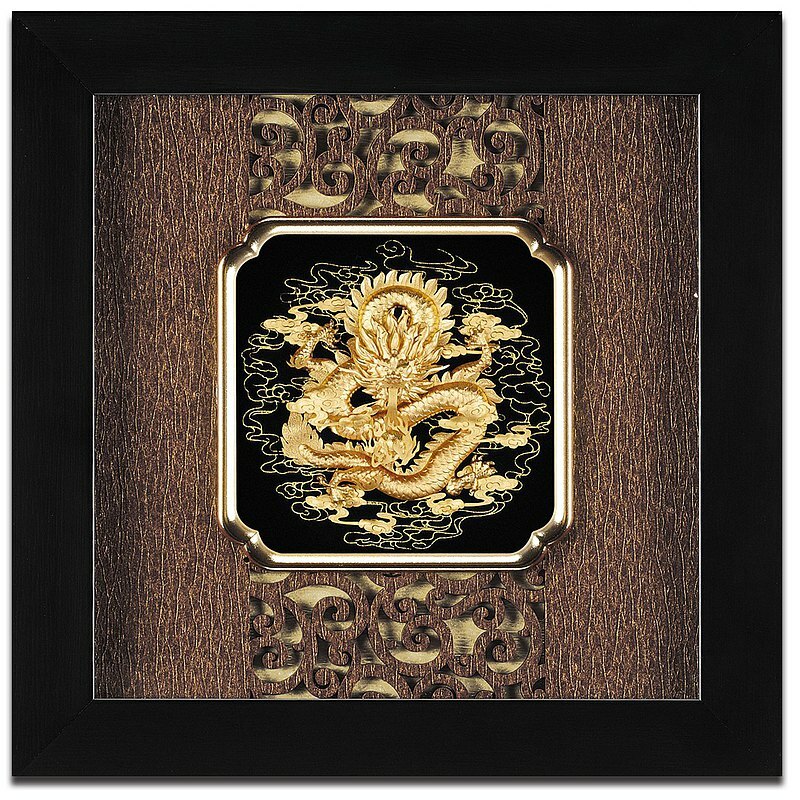 999高純度金箔製作,紙雕藝術~雅鑑鑫品立體金箔畫,金色代表著尊貴莊嚴、吉祥富裕。 龍具有神武力量、卓越、掌財,可為帝王、領袖代名詞,特別提供客製化金箔銘版題字。