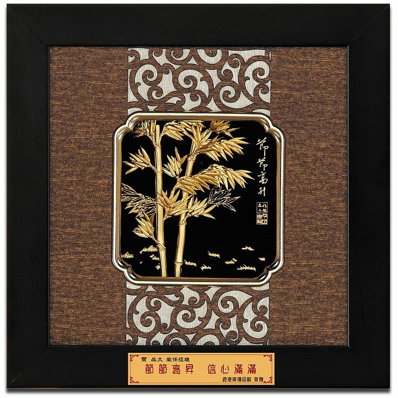 節節高升金箔畫以竹象徵志節與步步高升,適合升遷、開業祝賀,並提供客製金箔銘版題字服務。