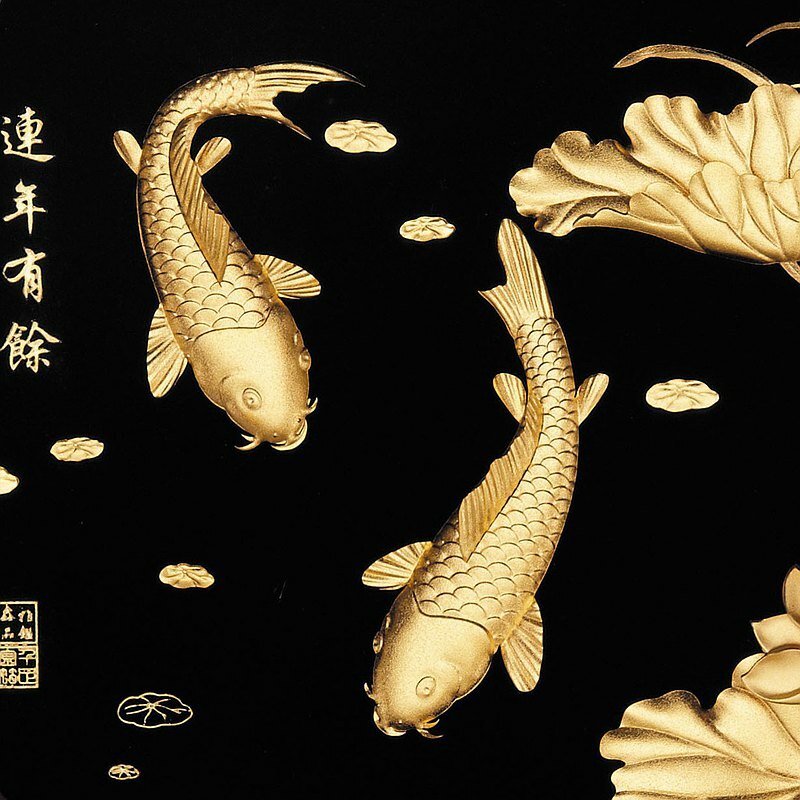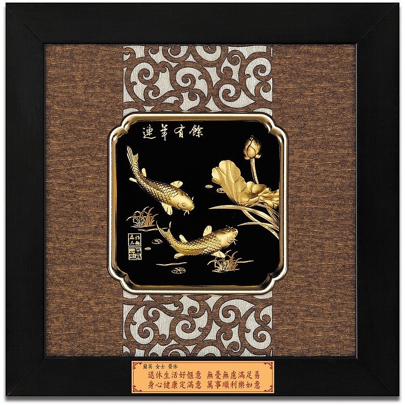 連年有餘是由蓮花和鯉魚組成的傳統的吉祥圖案,用以稱頌富裕祝賀之意。蓮是連的諧音,年是鯰的諧音,魚是餘的諧音,也稱年年有魚。