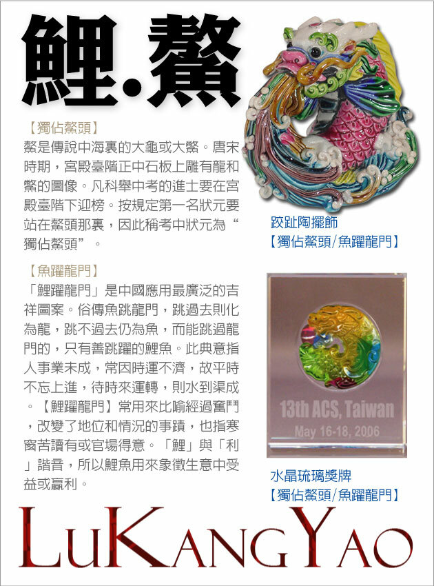 獨占鰲頭: 寓意:學子金榜題名、商界金碧 輝煌、事業發達、財運亨通 苦讀有成,功名全得, 家家得利,富貴有餘。
