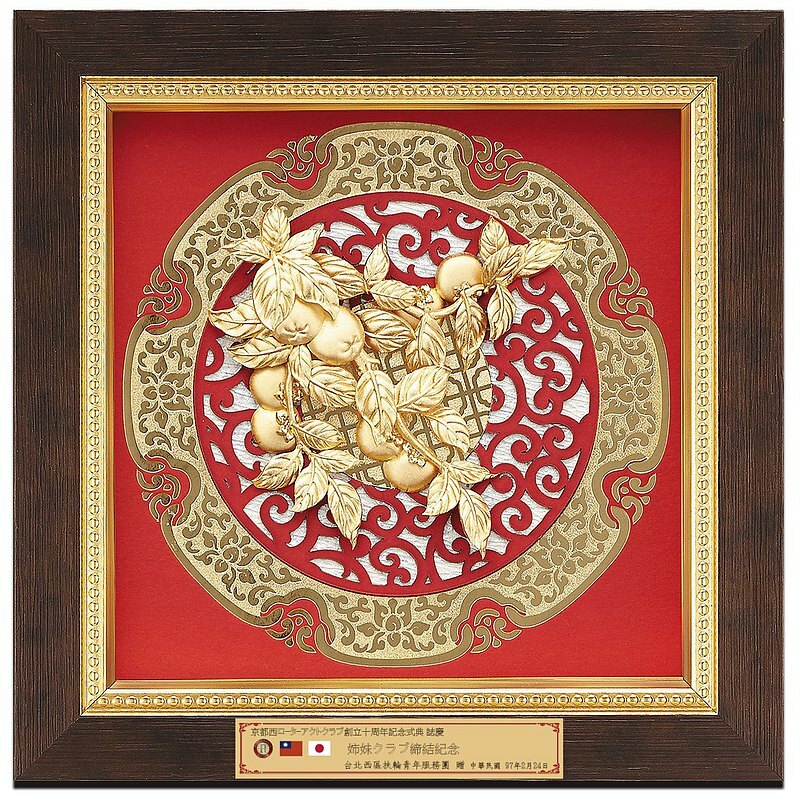 事事如意:「柿」與「事」同音,即事事如意;贈送「事事如意」給親朋好友,是 祝福他事業一帆 風順、生活美好、隨心所願。 本作品不僅適合家庭擺飾,亦是送禮的極佳選擇,希望您會喜歡! 特別服務:提供客製化金箔銘版題字