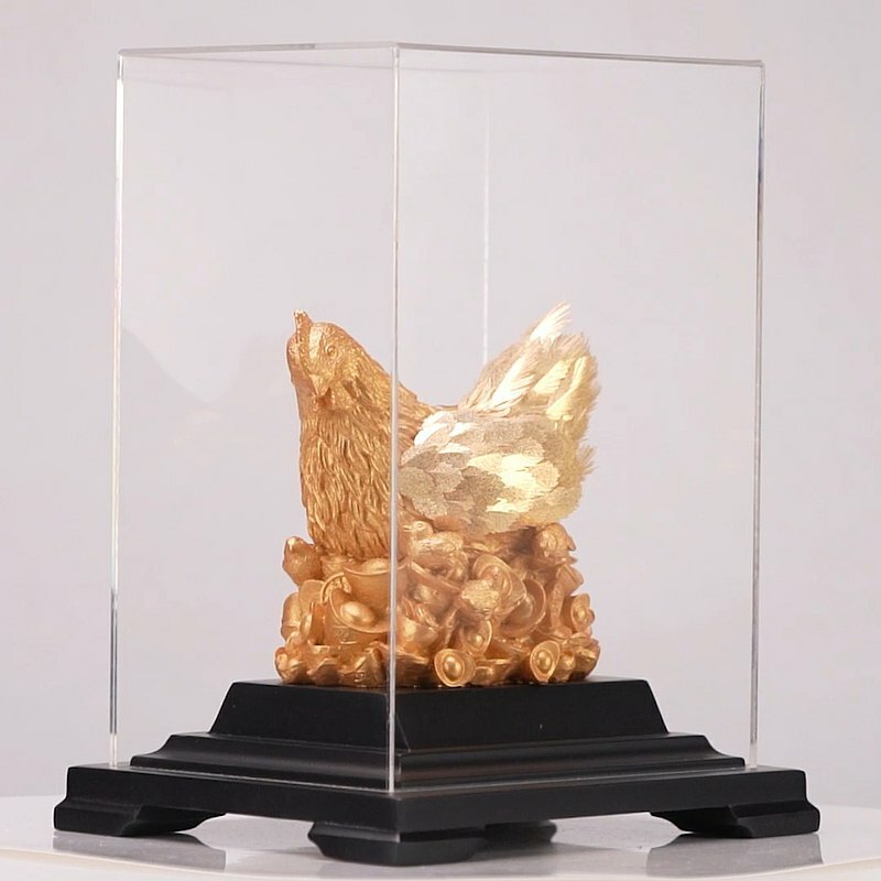 金雞母坐在金元寶山上,高歌引唱,象徵事業的路途一路高歌猛進,財源滾滾!