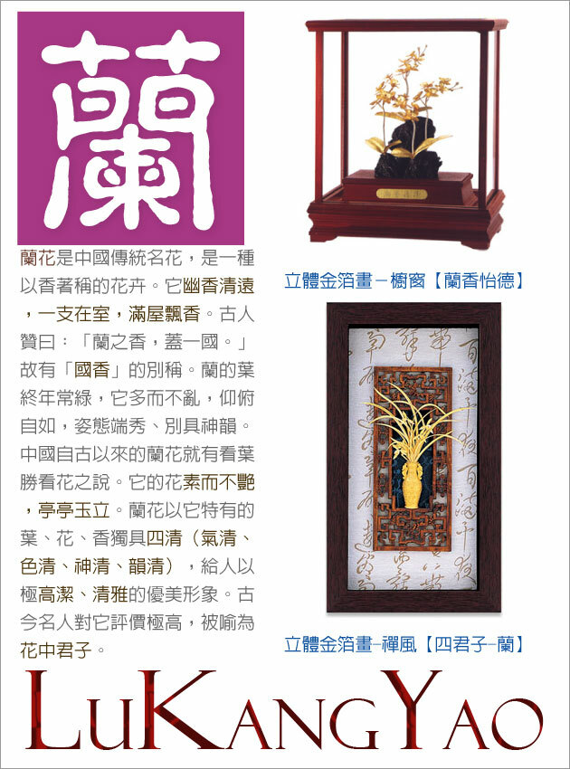 蘭花是幽香清遠,一枝在室,滿屋飄香。蘭花以它特有的葉、花、香獨具四清氣清、色清、神清、韻清給人以極高潔、清雅的優美形象。古今名人對它品價極高,被喻為花中君子。在古代文人中常把詩文之美喻為「蘭章」,把友誼之真喻為「蘭友」,把良友喻為「蘭客」。