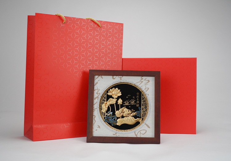 這件結合了紙雕藝術與高純度金箔的禮品,採三層裱褙方式呈現更顯立體,以「怡然自樂」為主題,展現出豐富的文化涵養。每一幅畫都仿佛是一幅呈現在你眼前的立體金箔畫,細緻的工藝展現了獨特的藝術美感。源自晉朝陶淵明的《桃花源記》中的「黃發垂髫,並怡然自樂」,彷彿這金箔畫就是尋找到心靈寧靜與喜悅的寓言。金箔的含量高達99.9%,保證了最高品質的工藝呈現。