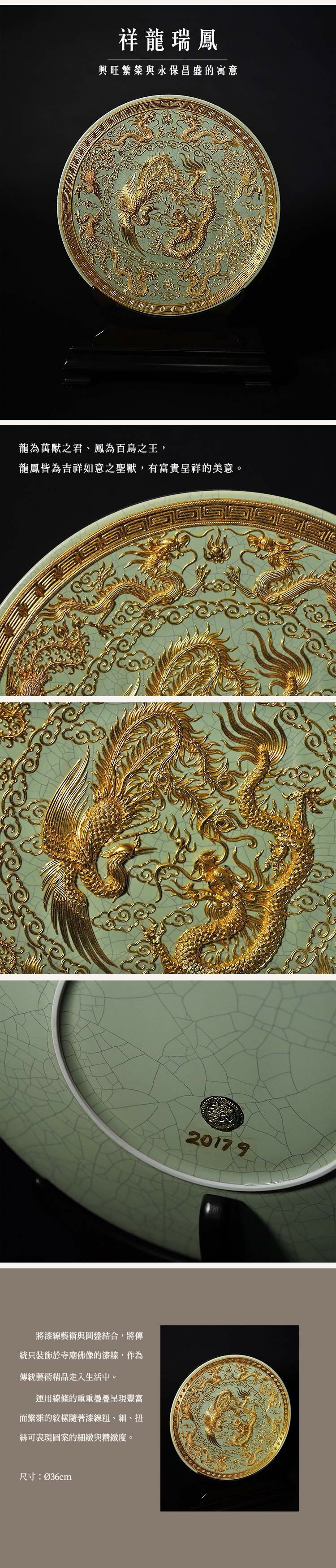 作品名稱:漆線雕 祥龍瑞鳳 盤飾