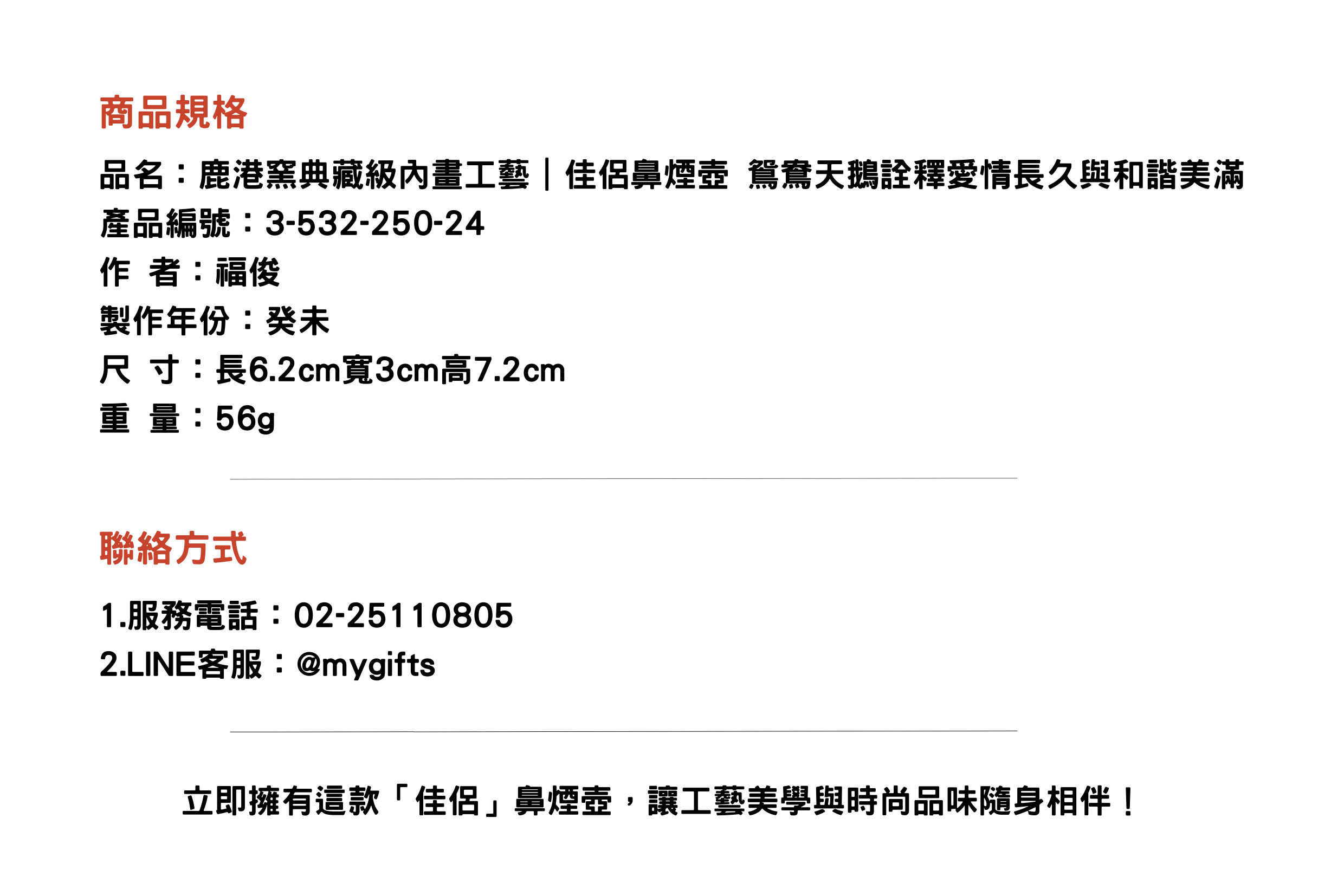 佳侶鼻煙壺以精緻內畫詮釋愛情的永恆與和諧,匠心工藝展現優雅魅力,值得珍藏與品味。