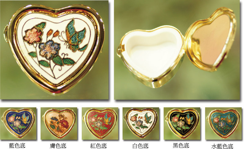 居家開運商品-景泰藍旅行用隨身萬用盒-小心形‧蝴蝶花草