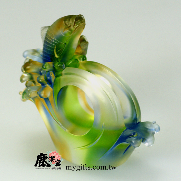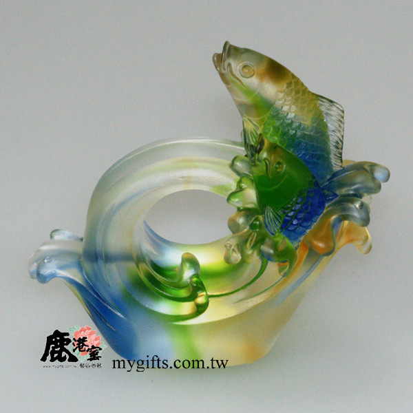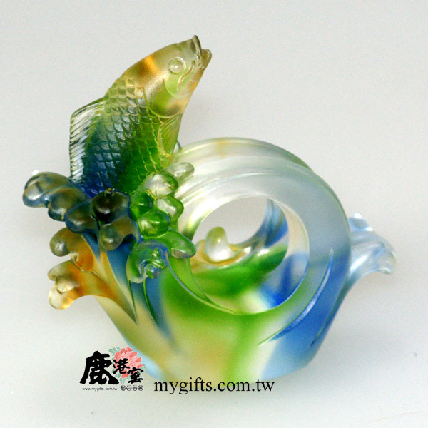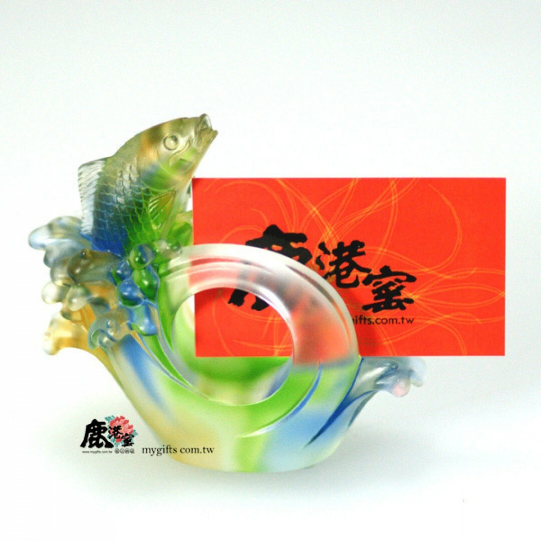 琉璃魚躍名片座,精緻工藝與彩色水晶,寓意事業有成、時來運轉,居家辦公開運首選。