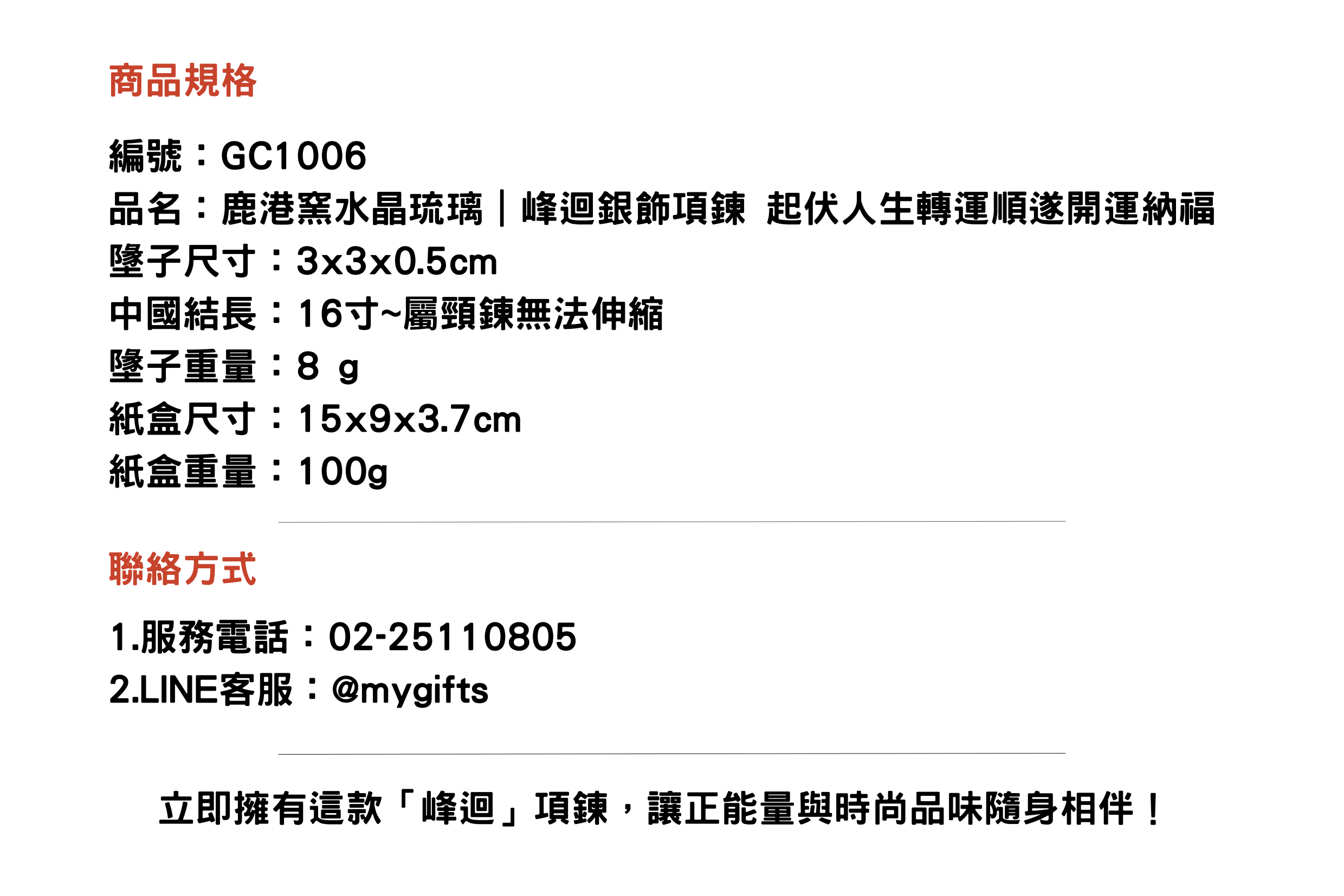 鹿港窯水晶琉璃|峰迴銀飾項鍊 起伏人生轉運順遂開運納福