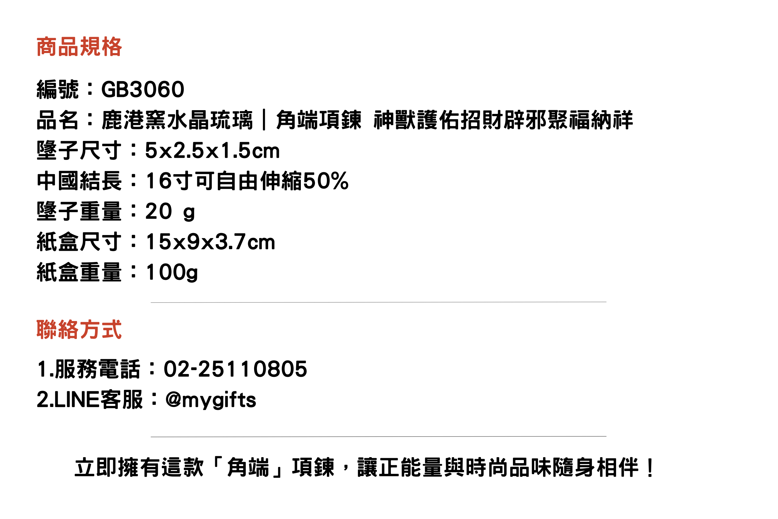 鹿港窯水晶琉璃角端項鍊,融合瑞獸護佑與精湛工藝,象徵財富、平安與吉祥。無論自戴或贈禮,都能帶來強大守護能量,助您迎向事業與人生巔峰!