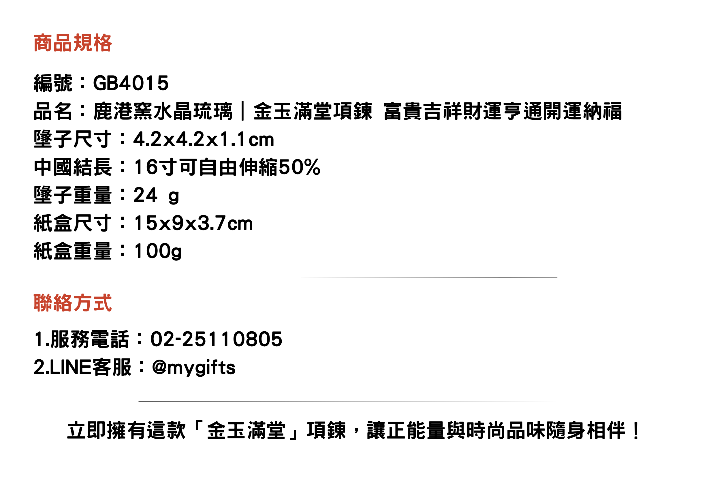 金玉滿堂象徵財富與福氣滿盈,佩戴此款水晶琉璃項鍊,讓富貴能量環繞,帶來吉祥如意與好運加持。
