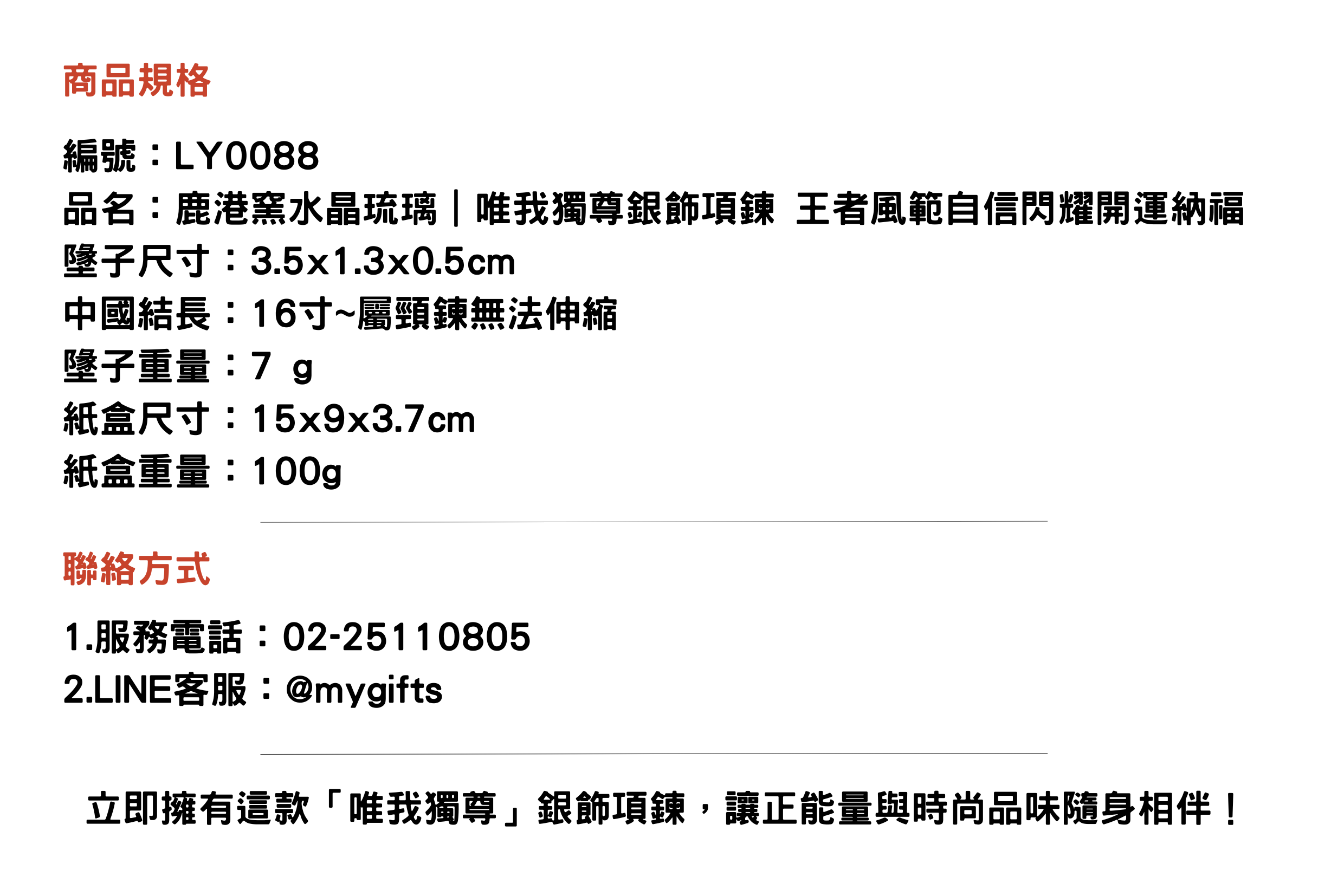 鹿港窯水晶琉璃|唯我獨尊銀飾項鍊 王者風範自信閃耀開運納福